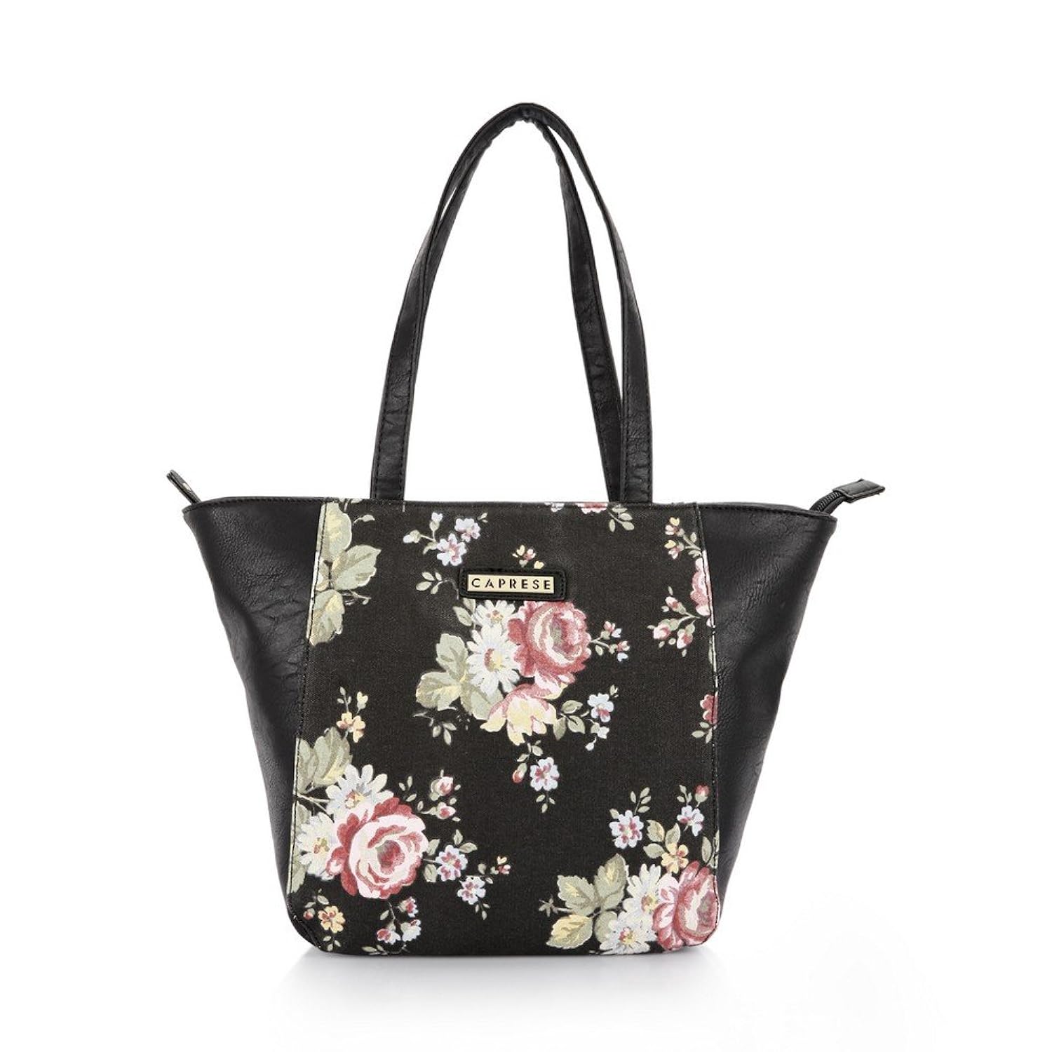 - Faux leather material black colored tote bag